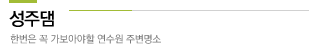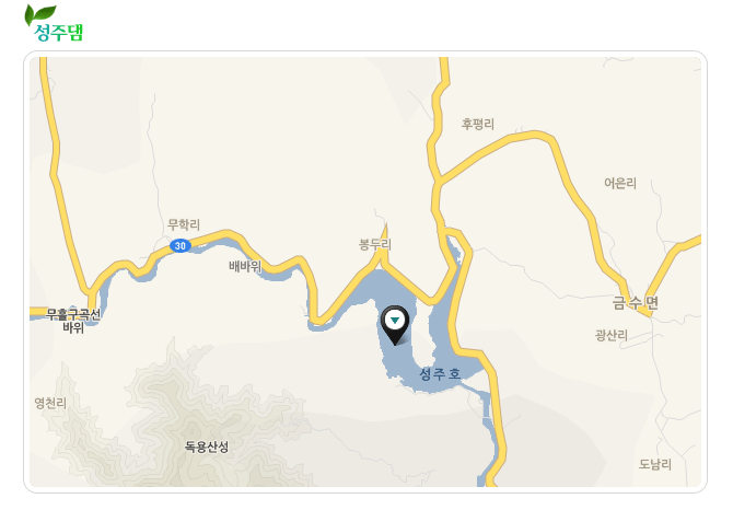 ±Ý¼ö¸é ºÀµÎ¿¡ À§Ä¡ÇÑ ¼ºÁÖ´ïÀº 1992³â ¿Ï°øµÇ¾î ÃÑ 3õ8¹é¸¸ÅæÀÇ ¹°À» °¡µÎ¾î ¼ºÁÖ±º°ú °í·É±º¿¡ ³ó¾÷¿ë¼ö¸¦ °ø±ÞÇϰí ÀÖÀ¸¸ç, ¼ºÁÖ´ïÀ» ³¢°í µµ´Â ¾à 7kmÀÇ µµ·Î´Â ÀÚ¿¬°ú Àΰ£°ú ÀÚµ¿Â÷°¡ Á¶È¸¦ ÀÌ·ç¾î ¾Æ¸§´Ù¿î Ãß¾ïÀ» ¸¸µé ¼ö ÀÖ´Â °÷ÀÌ´Ù.